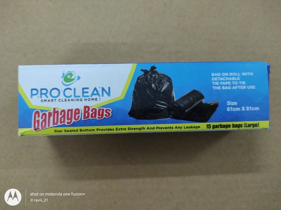 PROCLEAN|Garbage bag Large Size 24X32 (15 Pcs Roll) 61×81 CM|Colours: Black|G1003